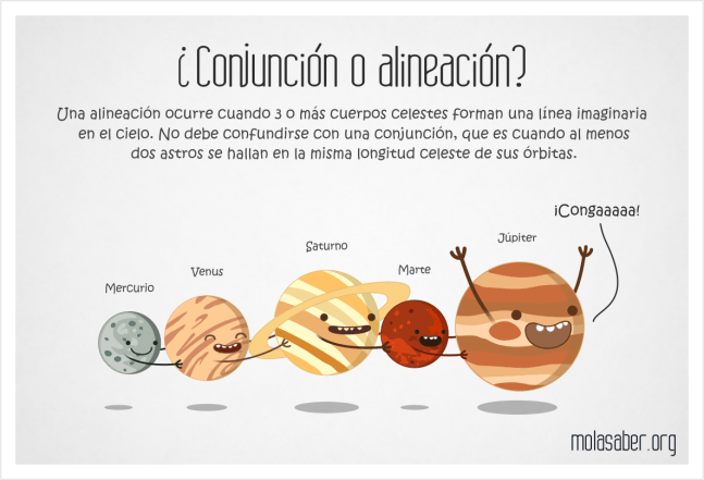 Pero bueno, ya sean alineaciones aparentes en el cielo o conjunciones planetarias, no tenemos que preocuparnos por  consecuencias apocalípticas, ni alteraciones místicas. El único influjo digno de mención relacionado con estos fenómenos está en la belleza de lo que suele ser un maravilloso espectáculo celeste.